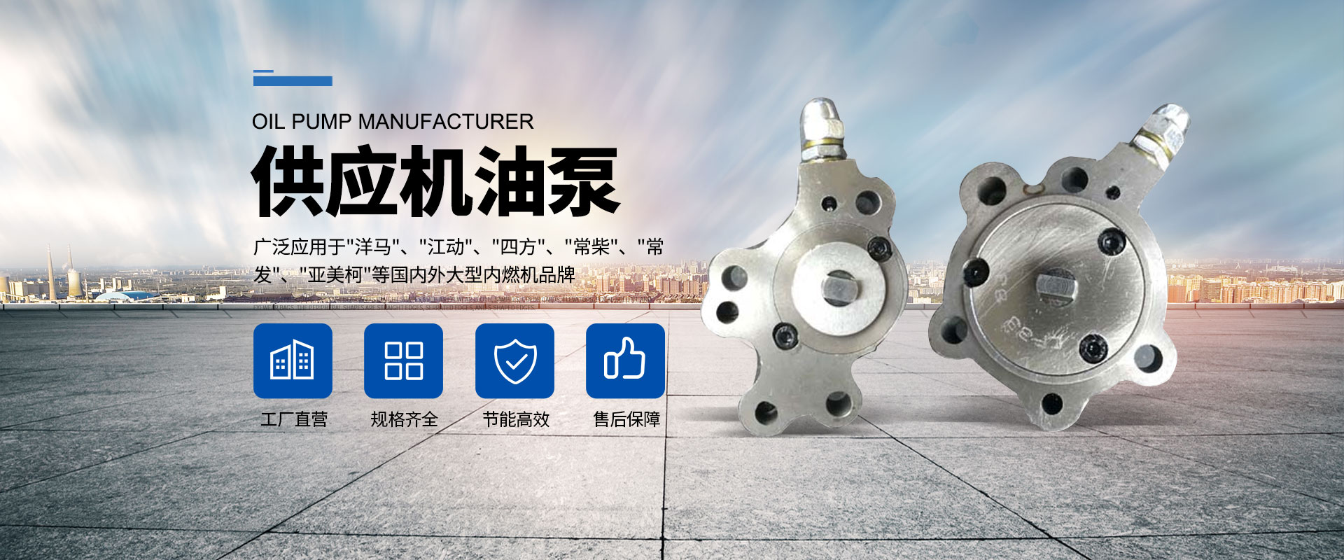 公司常年為"洋馬"、"江動(dòng)"、"四方"、"常柴"、"常發(fā)"、"亞美柯"等國(guó)內(nèi)外大型內(nèi)燃機(jī)廠(chǎng)家提供各類(lèi)機(jī)油泵。公司還配套日本洋馬公司所有產(chǎn)品,配套江動(dòng)"紅雙喜"、"省油王"、"8"系列產(chǎn)品;配套常柴"H"、"L"系列大功率柴油機(jī);配套常發(fā)國(guó)三標(biāo)準(zhǔn)"金冠"系列柴油機(jī)。